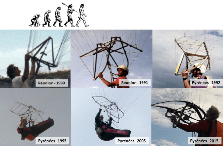 L’idée est venue de l’envie de laisser voler librement une aile souple ! Dans cette ère de liberté pourquoi ne pas fonder le mouvement de libération des ailes souples ? Comment remonter les ancrages pour les rapprocher des centres de poussée ? Simples problèmes mécaniques.
